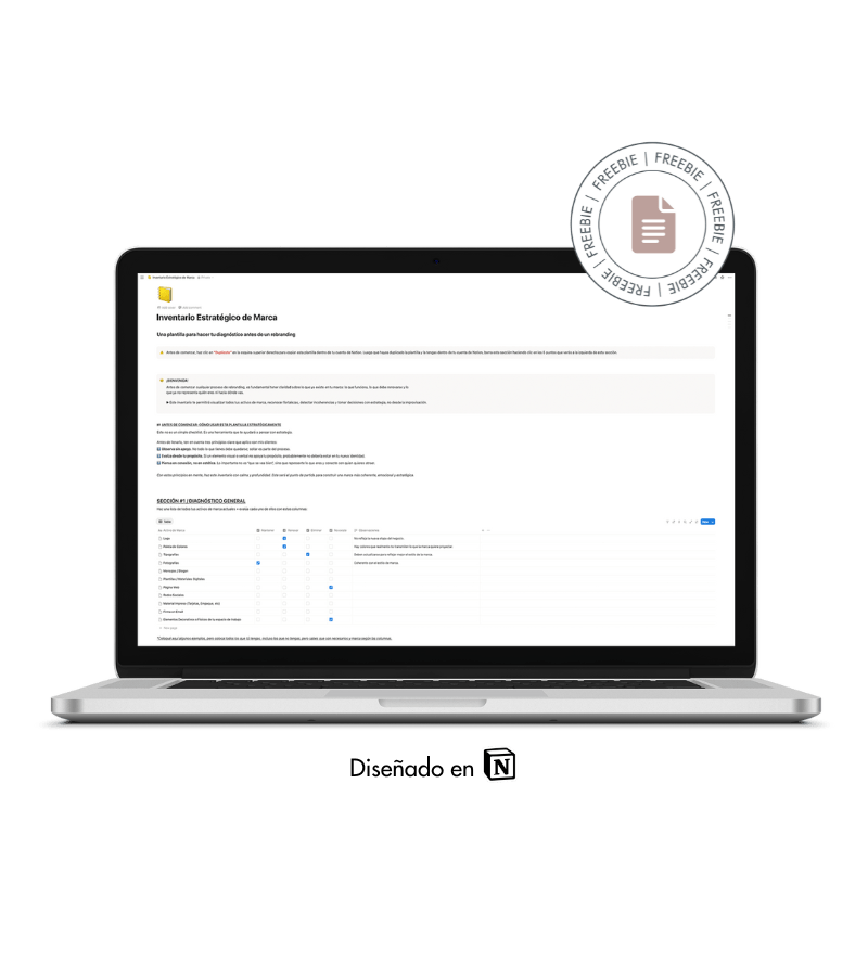 Este inventario te permitirá visualizar todos tus activos de marca, reconocer fortalezas, detectar incoherencias y tomar decisiones con estrategia, no desde la improvisación.